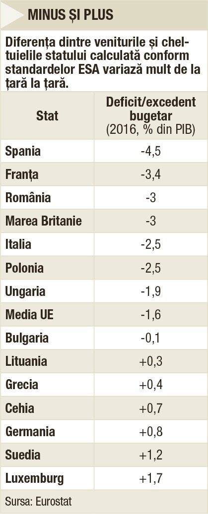Există două soluţii la îndemâna Guvernului pentru a evita depăşirea de deficit asumată: creşterea încasărilor la buget sau reducerea cheltuielilor. În 2017, veniturile bugetului general consolidat au totalizat 30% din PIB, un pic mai bine decât în urmă cu un an, însă în continuare la unul dintre cele mai mici niveluri din Europa. De fapt, doar Irlanda se situează mai jos decât noi la acest capitol. Urmează, cu venituri bugetare de circa 35% din PIB calculate la standarde ESA, Bulgaria şi Lituania, arată institutul de statistică al Uniunii Europene – Eurostat, în timp ce în majoritatea statelor membre sumele colectate de Fisc depăşesc 40% şi, în unele cazuri, cum ar fi Danemarca, Franţa sau Finlanda, trec bine şi de pragul de 50% din PIB.