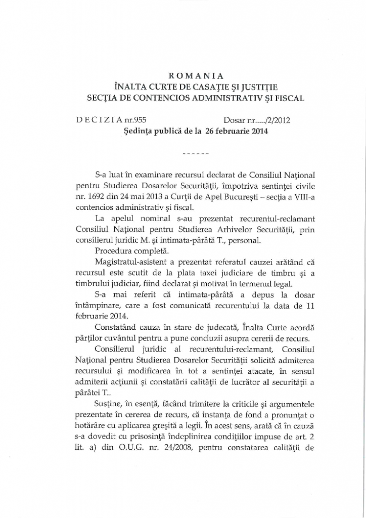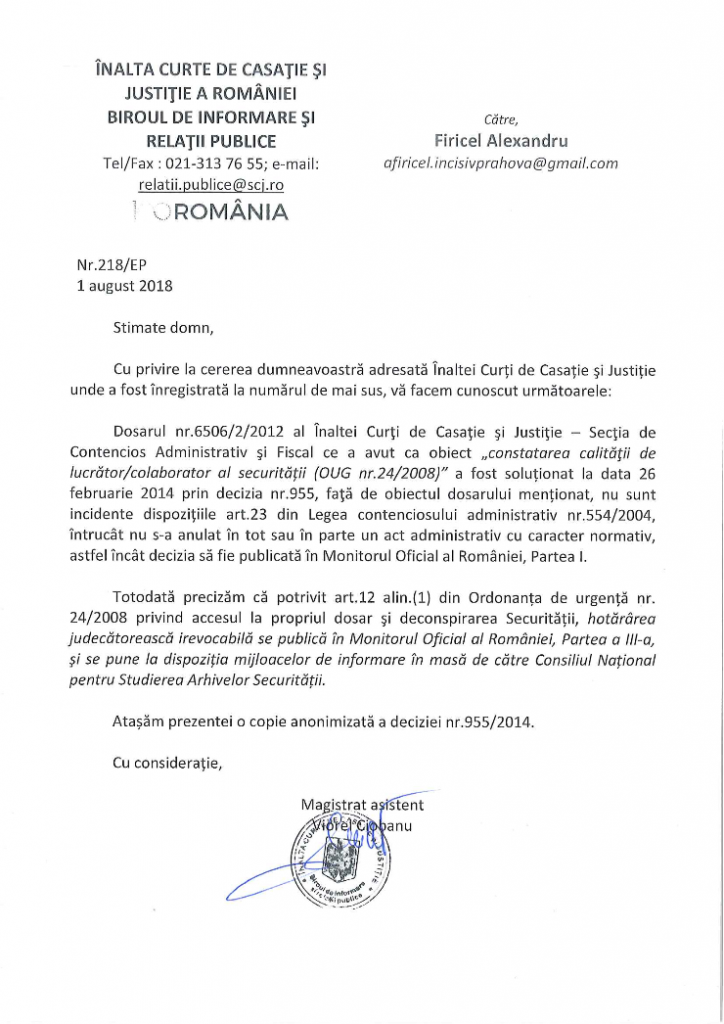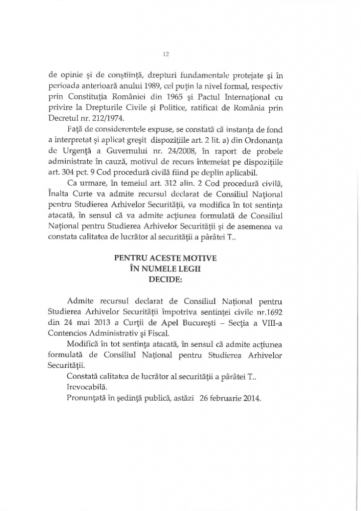 3. judecator de drepturi si libertati – judecătoarea Trandafirescu (fosta Ionita) Zinica din cadrul Secției Penale a Tribunalului Prahova (precum si decizia ÎCCJ-SCAF nr.955/2014 prin care s-a constatat calitatea de colaborator al securității), fost ofiter de securtitate, fost ofiter SRI, personaj obscure care a dat mandate de perchezitie pentru doi fosti colegi, in mod ilegal, fara nicio calitate in dosar ( Mr ® Florea Daniel si col ® Florian Gulianu de la SRI Prahova);(atasam doumentele mai jos)…