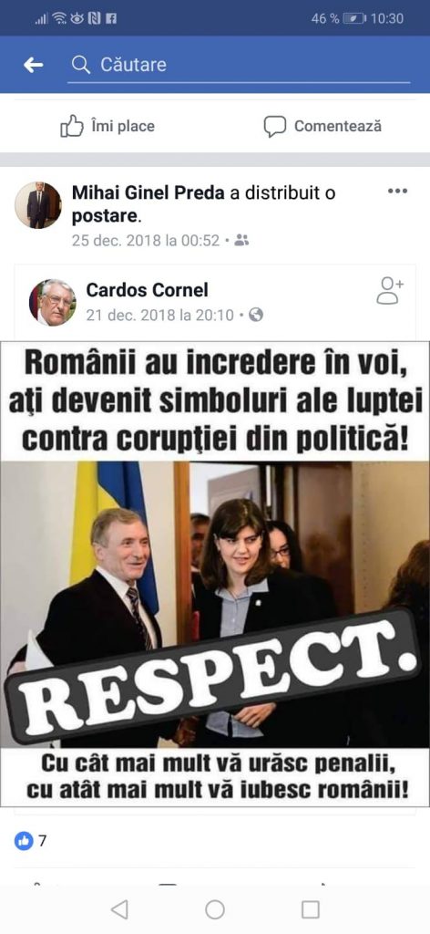 In afara unei posibile incalcari ale deontologiei profesionale ne intrebam de ce impartialitate se mai pot bucura persoanele cercetate de acesta si/sau subordonatii sai avand in vedere ca tocmai a promovat mesaje de sustinere fata de Laura Codruta Kovesi, persoana pusa sub invinuire penala.