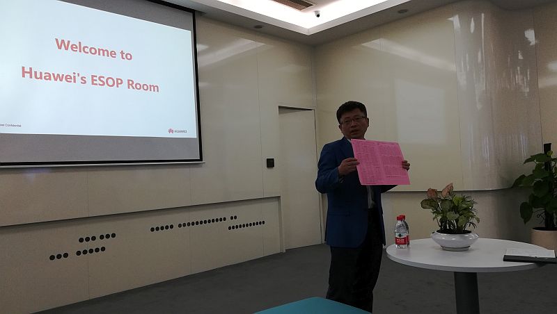Acesta a ținut să sublinieze că Huawei este o companie privată, deținută exclusiv de proprii angajați, respectiv 96.788 de acționari. Nu poți să vinzi acțiuni în afara companiei. Ren Zhengfei, fondatorul companiei deține un pachet de 1,14% din totalul acțiunilor. Ca să deții acțiuni, în primul rând trebuie să fii angajat al Huawei. Al doilea aspect este că trebuie să îndeplinești anumite criterii de performanță, pentru care primești anumite beneficii. Vânzarea și cumpărarea de acțiuni este un proces gestionat de un organism intern numit Uniunea, formată din 115 reprezentanți aleși.