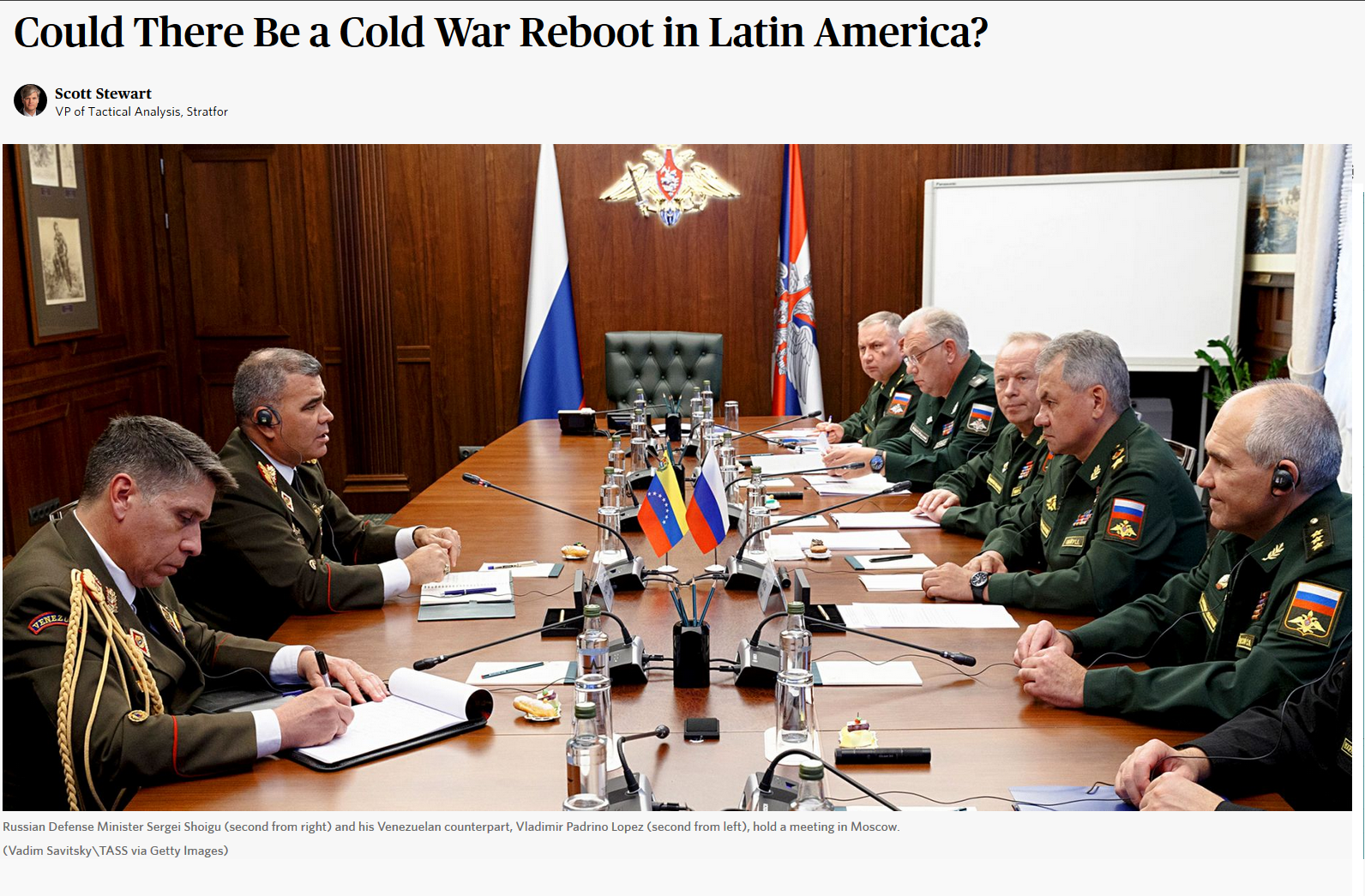 De fapt, cum amenințările de la periferia Rusiei sunt mai descurajante ca niciodată, se poate argumenta că din perspectiva Moscovei războiul rece nu s-a încheiat vreodată cu adevărat. Dar, indiferent dacă actualele acțiuni ale Rusiei din America Latină constituie un al doilea război rece ori numai o simplă revigorare a conflictului original, este evident că mulți dintre aceiași actori sunt implicați activ în tulburările care se desfășoară în ograda din spate a Washingtonului – și, în mare, din aceleași motive.