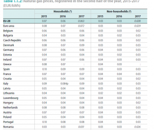 • Prețul gazului este de 30-50% din prețul electricității pentru consumatorii casnici și/sau industriali