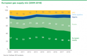 • Rusia și-a crescut cota de piață în consumul UE de la 23% la 36%- o problemă de securitate pe termen lung