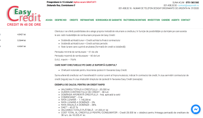 Un al treilea exemplu este al Easy Credit 4 All IFN. Compania funcționează din 2009, și a cerut credite cu dobândă zero de la stat în primele 25 de minute de la deschiderea programului. Compania arată pe site că oferă credite cu dobânzi de 3% pe lună, 36% pe an și dobândă anuală efectivă (DAE) de 43,37%. DAE poate ajunge și până la 79,4%, nivel pe care compania îl prezintă ca DAE maxim: