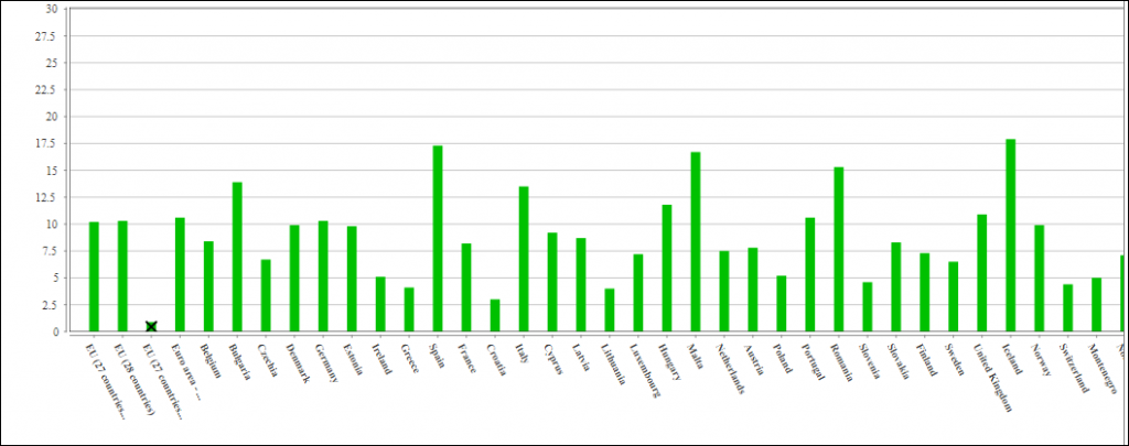 Cu 15,3% ne depășesc doar Spania și Malta, dar suntem mult deasupra Ungariei (11,8%) și Poloniei (5,2%) și a mediei UE (10%)!