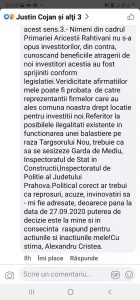 Referitor la posibilele ilegalitati existente in functionarea unei balastiere pe raza Targsorului Nou, trebuie ca sa se sesizeze Garda de Mediu, Inspectoratul de Stat in Constructii,Inspectoratul de Politie al Judetului Prahova. Politic corect ar trebui ca reprosuri, acuze, invinovatiri sa – mi fie adresate, deoarece pana la data de 27.09.2020 puterea de decizie este la mine si in consecinta raspund pentru actiunile si inactiunile mele! Cu stima, Alexandru Cristea.”