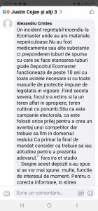 „Un incident regretabil-incendiu la Ecomaster unde au ars materiale nepericuloase. Nu au fost medicamente sau alte substante ci preponderent tuburi de spuma cu care se face etansarea-tuburi goale.