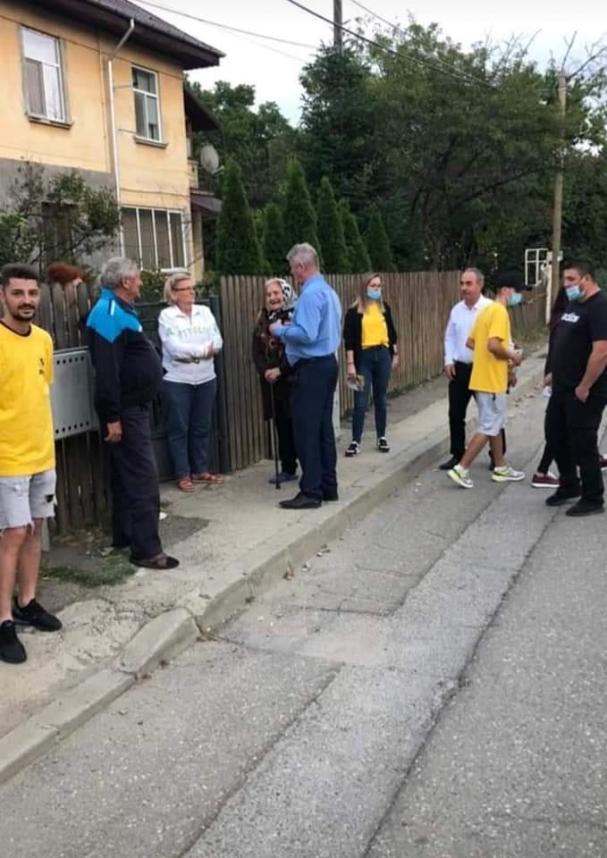 Primarul PNL, Leonas Radu, din comuna Brazi/Prahova, in campanie electorala, fara respectarea regulilor de distantare si fara masca