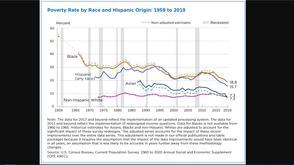 La inceputul anului 2020, rata saraciei in rindul minoritatii negre era la nivelul cel mai scazut din ultimii 59 de ani. În trei ani sub Trump, salariul mediu al populatiei afro-americane a crescut mai mult decât în opt ani sub Obama (19%, comparativ cu doar 11%).