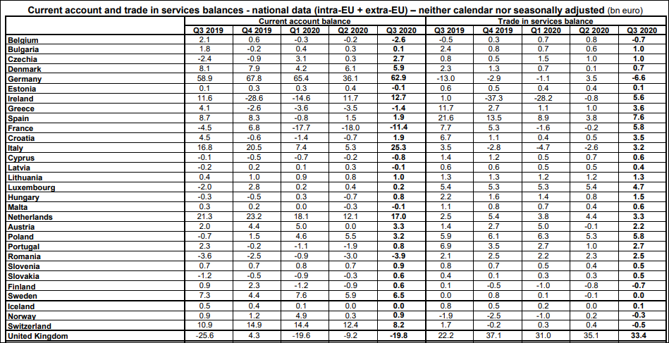 Din păcate, iarăși trebuie să remarcăm faptul că nu ne încadrăm în tiparul european: Uniunea are, ca ansamblu, un excedent de cont curent de 75,6 miliarde de euro doar pe acest trimestru.