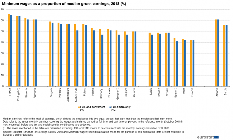 Cât de departe s-a mers la noi cu creșterea salariului minim? Destul de departe, având în vedere că acesta a ajuns aproximativ la două treimi din salariul mediu, ceea ce ne plasează pe locul IV în Uniune, în aceeași grupă cu state mult mai „sociale” decât noi:
