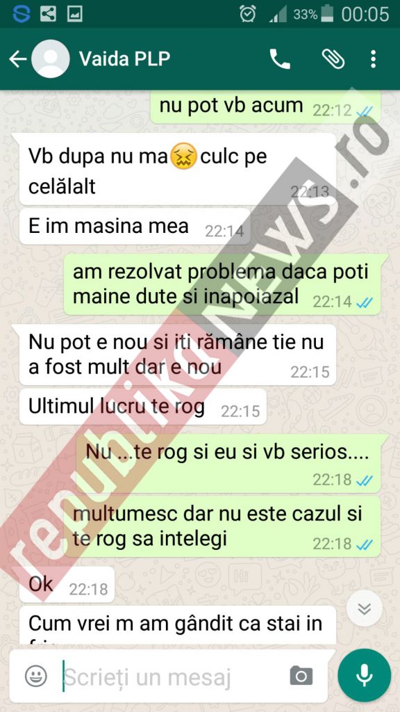 Atașăm la prezenta mesaje 2 fotografii ce cuprind mesaje indecente ale managerului-polițist local Vaida Adrian alături de adresa ANFP nr.6473/31.08.2018.
