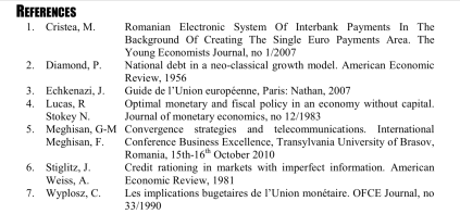 - Perpetuează tehnica frauduloasă a citării unor articole ale unor prieteni, aritcole care nu au nicio legătură cu subiectul articolului care îl citează – ,,Characteristics of the economic financial crisis in Europe”. Din nou este citată profesoara de la Craiova, Cristea, cu aceeași lucrare citată fraudulos în primul articol, respectiv ,,Romanian Electronic System of Interbank payments….”, nimic neregăsindu-se aici. Dar și Cristea avea să îi întoarcă favorul, citând lucrări fără valoare științifică semnate de Marcu, sau chiar de ea și de Marcu.
