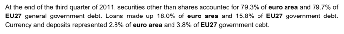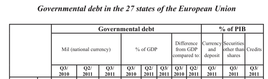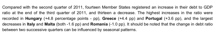 - Conținutul copiat și distorsionat (comunicatul Eurostat se referă la datoria publică la sfârșitul trimestrului III, iar conținutul copiat susține aceleași procente, dar pentru întreg anul 2011):