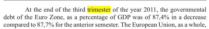 - Trimestru/ ,,Trimester”? În română da, în engleza economică, niciodată. Limba engleză folosită în articol are mai degrabă legătură cu graviditatea și sarcina, folosindu-se spre exemplu termenul ,,trimester” în loc de quarter, pentru indicarea perioadei la care se face referire în rapoartele statistice. La gravide – trimestre. La cercetare economică în limba engleză, quarter, necondiționat.