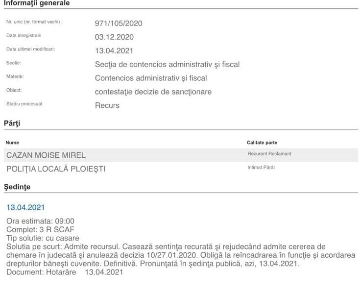 Dezvaluirile ziarului Incisiv de Prahova confirmate de instanta/Politist local dat afara ilegal de tandemul Adrian Vaida – Adrian Dobre – reaincadrat in functie cu acordarea drepturilor banesti – Ziarul Incisiv de Prahova