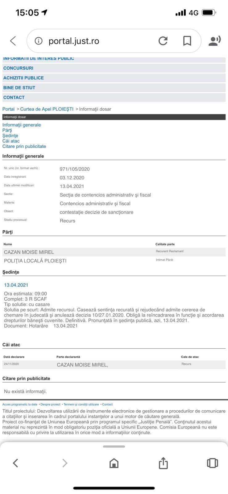 Mai mult, politistul local Cazan Mirel daca ramanea cu sanctiunea pe un an de zile de sanctionare (si aceea ilegala) NU avea de gand si in intentie sa actioneze in instatna institutia, pentru ca mai avea doi ani de zile pana la penise.