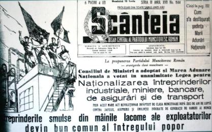 ,,Înterprinderile smulse din mâinile lacome ale exploatatorilor…”…devin bun comun al întregului popor. Consiliul de Miniștri a adoptat și Marea Adunare Națională a votat în unanimitate legea pentru naționalizarea întreprinderilor industriei miniere, bancare, de asigurări și de transport”, titra în 13 iunie 1948 ziarul ,,Scânteia” relatând Legea 119 din 11 iunie 1948.