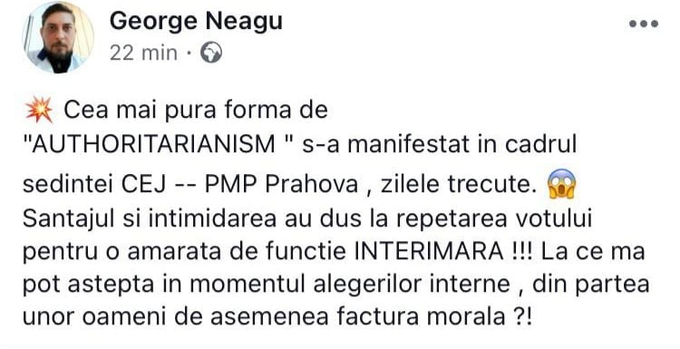 Ca orice organizație politică care se respecta, cu toate ca imediat după alegerile parlamentare, candidatul PMP Prahova la Primăria Ploiești, domnul Dragoș Rădulescu și-a dat demisia din partid, astfel organizația județeană rămânând fără secretar general, la diferența de aproape noua luni, s-a luat în discuție numirea unui secretar general interimar.