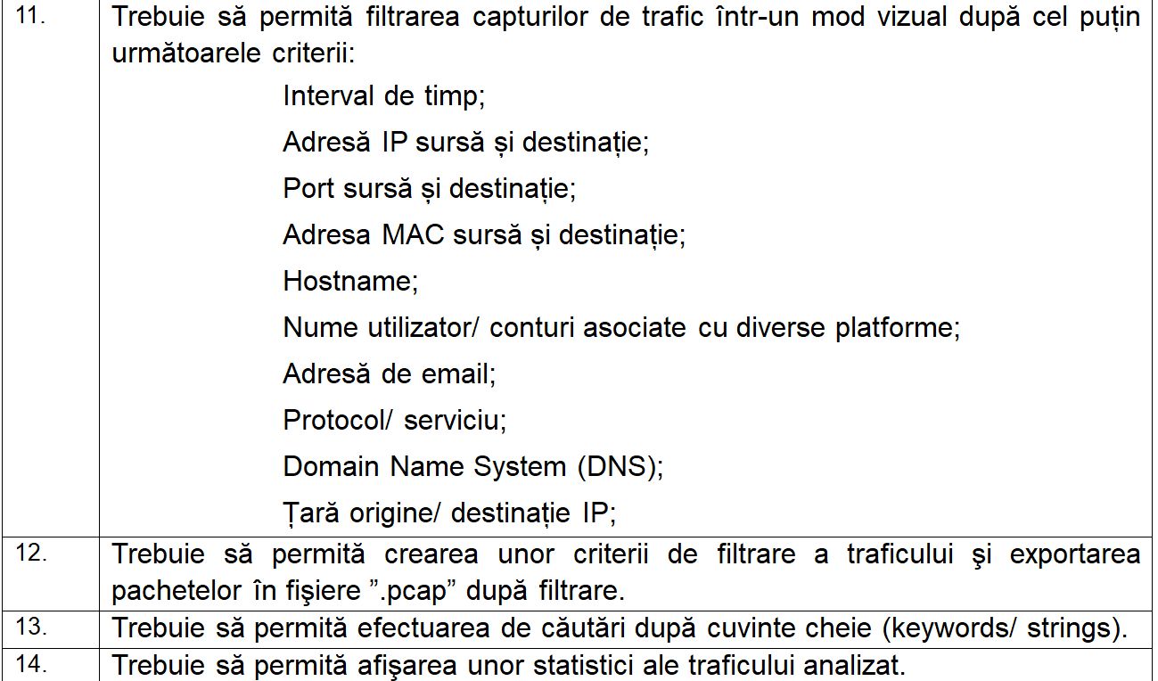 Soluția trebuia să-i permită SRI să monitorizeze și să caute în traficul de internet după adrese IP sau de email, nume de utilizator și conturi asociate cu diverse platforme etc. Licitația a fost atribuită în luna septembrie 2021.
