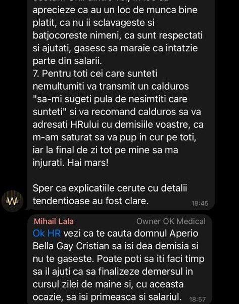 In loc de decoratii si multumiri: reprezentantul unei firme de apartament (OK Medical kineto SRL) isi permite sa tepuiasca cadrele medicale din Prahova si le transmite „sa-mi sugeti pula de nesimtiti ce sunteti”
