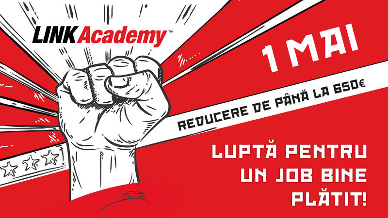 De asta s-a ocupat LINK Academy, care a organizat marea ofertă de 1 Mai, care vă dă posibilitatea de a obține o reducere de până la 650 euro la școlarizarea pe un de zile pentru cele mai căutate joburi în IT.