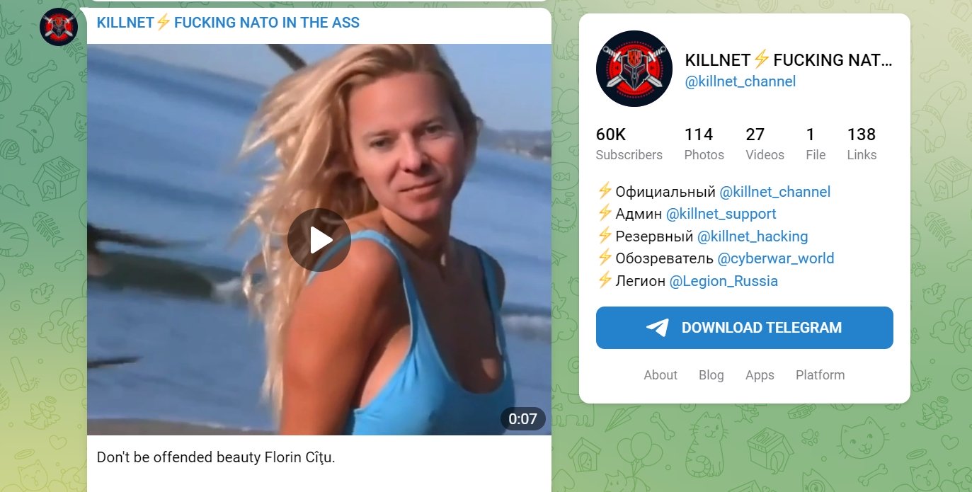Într-o postare anterioară pe contul de Telegram, hackerii de la Killnet au venit cu mesajul:
