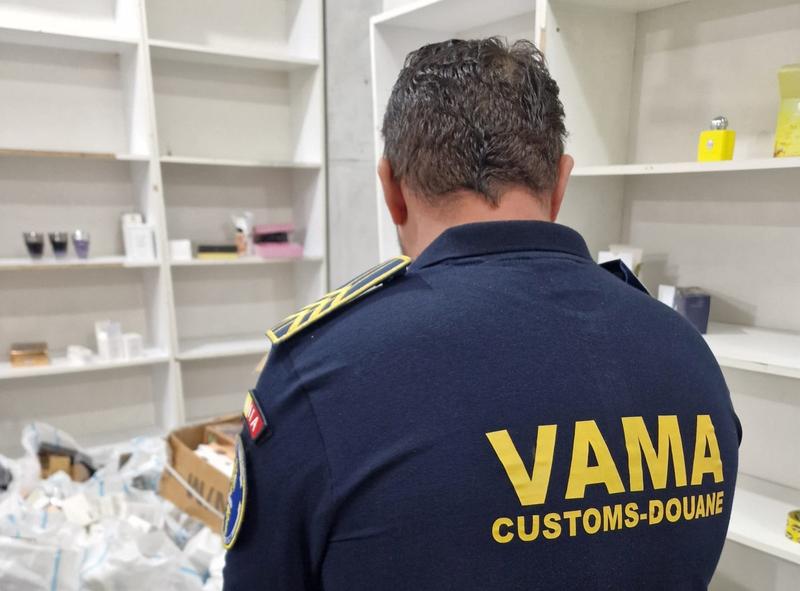 Acțiunea, efectuată în baza unei analize de risc proprii, a vizat verificarea a două locații din municipiul București unde au fost descoperite și reținute în vederea confiscării 31.297 bucăți parfumuri, 3.643 articole de cosmetică, 564 perechi ochelari și 126 bucăți textile în valoare totală de aproximativ 400.000 de euro.