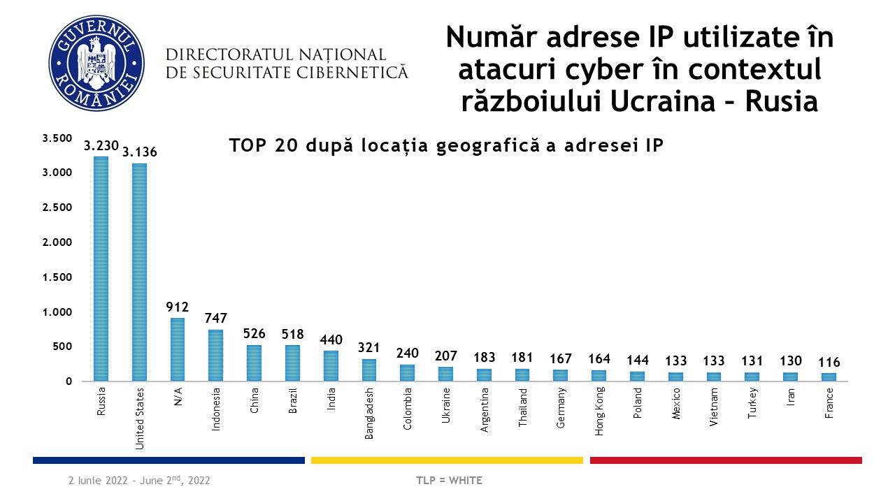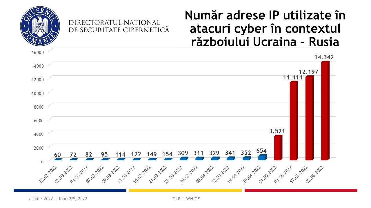 Numărul de adrese IP (protocol de internet – un număr unic atribuit fiecărui computer sau altui dispozitiv care se conectează la internet) utilizate în contextul războiului Ucraina-Rusia a crescut din nou, la peste 14.300 de adrese.