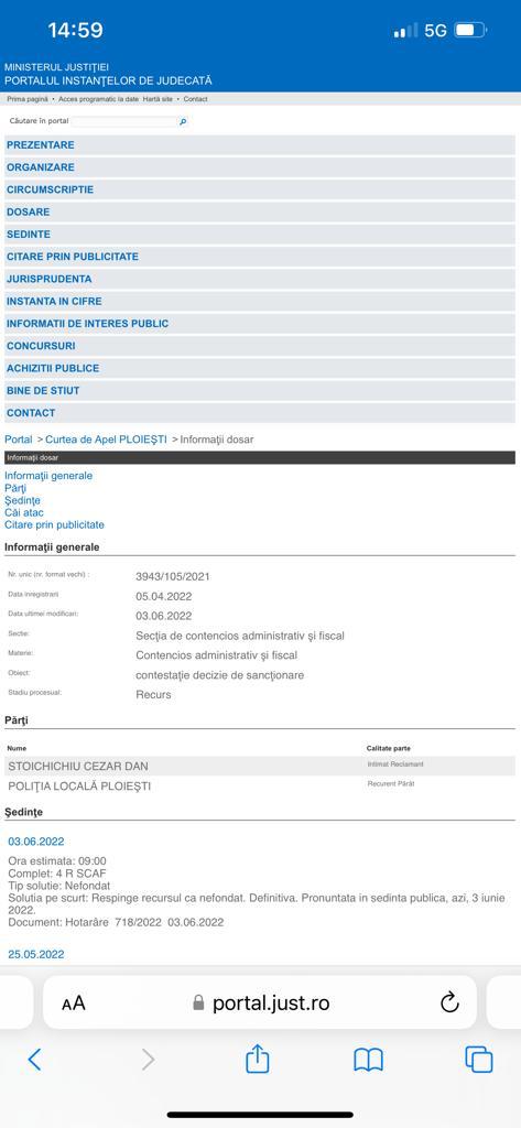 Azi, 03.06.2022, Instanta a respins recursul analfabetului functional Albu Catalin si trebuie sa raspunda penal pentru neindeplinirea unei hotarari judecatoresti care era executorie din prima instanta si pecuniar pentru prejudiciul cauzat bugetului local pentru incompetenta sa!