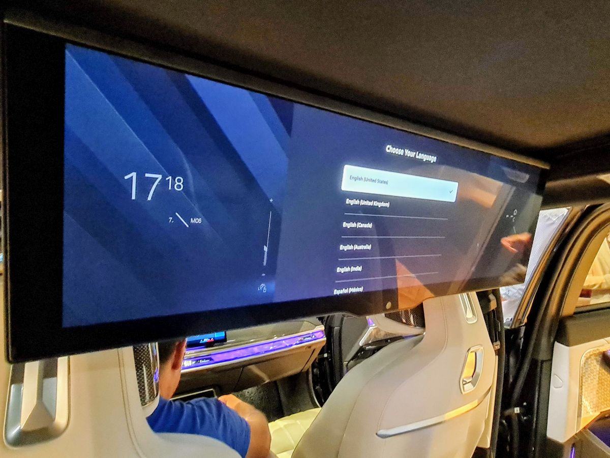 Mașina are un interior futurist, iar pentru locurile din spate există un ecran cu diagonala de 31,3 inci și rezoluție 8K. În plus, există și sisteme de comandă integrate în mânerele uşilor spate cu ecrane tactile de 5,5 inci.