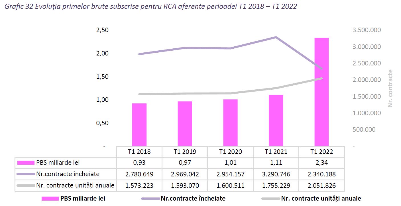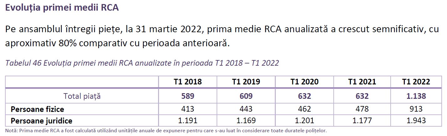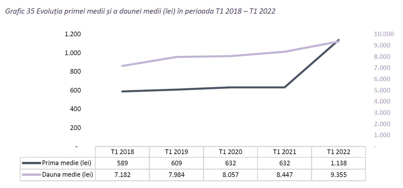 Pe ansamblul întregii piețe, la 31 martie 2022, prima medie RCA anualizată a crescut semnificativ, cu aproximativ 80% comparativ cu perioada anterioară.