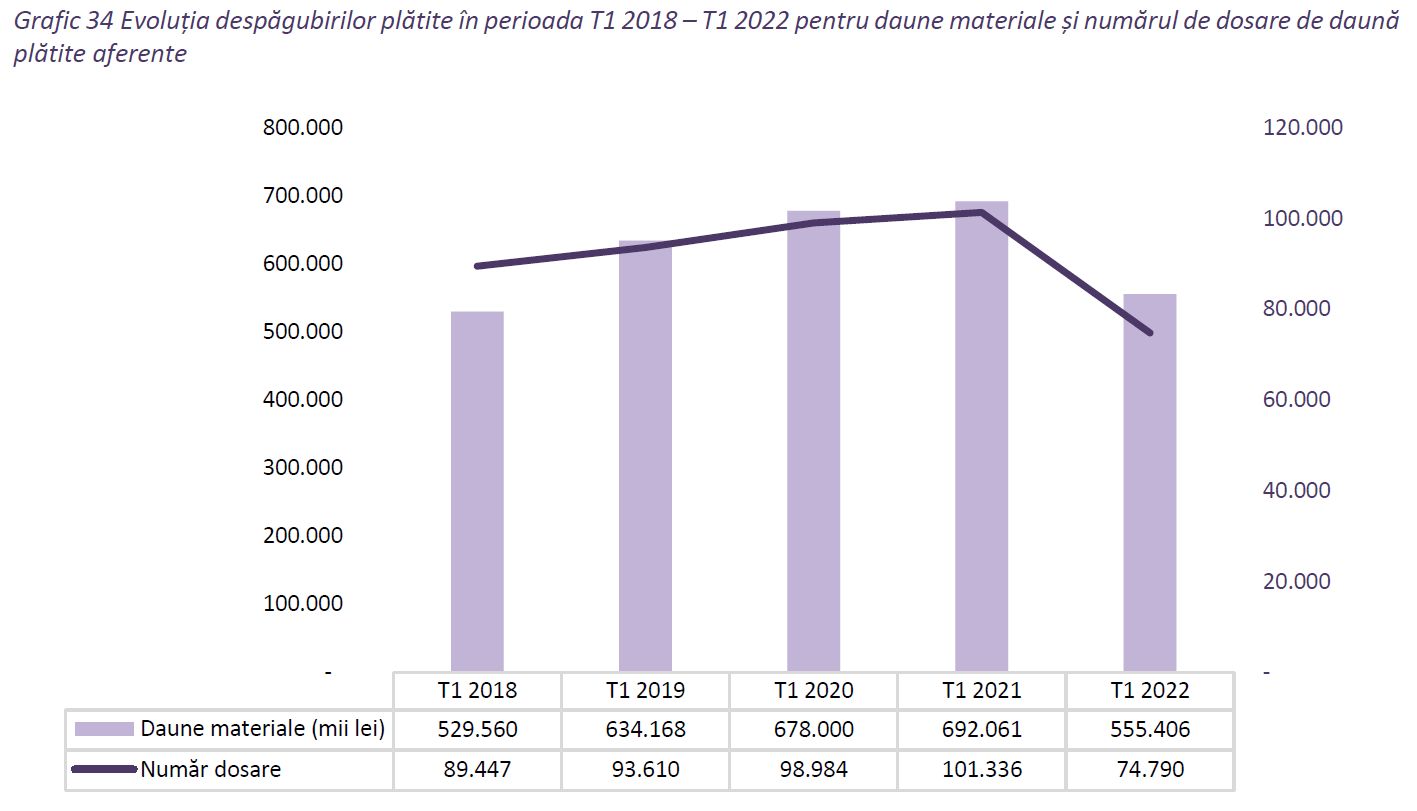 Acesta este motivul pentru care dauna medie a crescut la 9.355 de lei în primele trei luni din acest an, comparativ cu 8.447 de lei în primul trimestru din 2021.