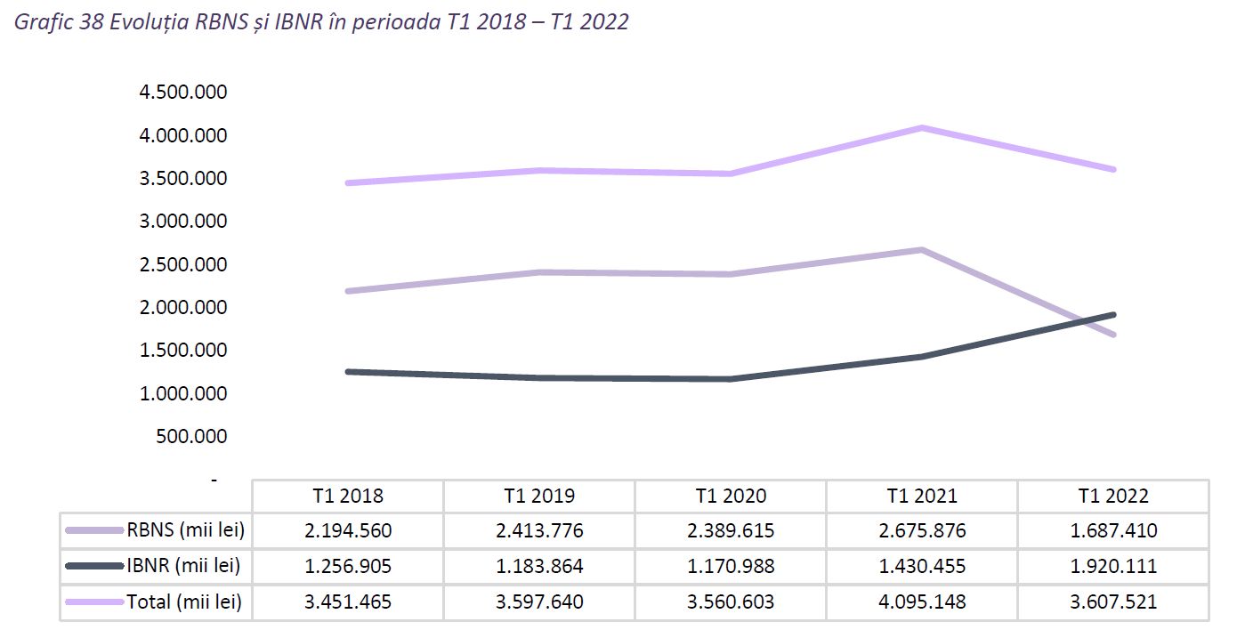 În plus, mai notează ASF, pentru a avea o imagine de ansamblu asupra cheltuielilor efective cu daunele trebuie avută în vedere și variația rezervelor tehnice constituite de către societăți pentru daunele avizate și încă neplătite (RBNS) precum și pentru daunele întâmplate, dar încă neavizate și deci neplătite (IBNR).