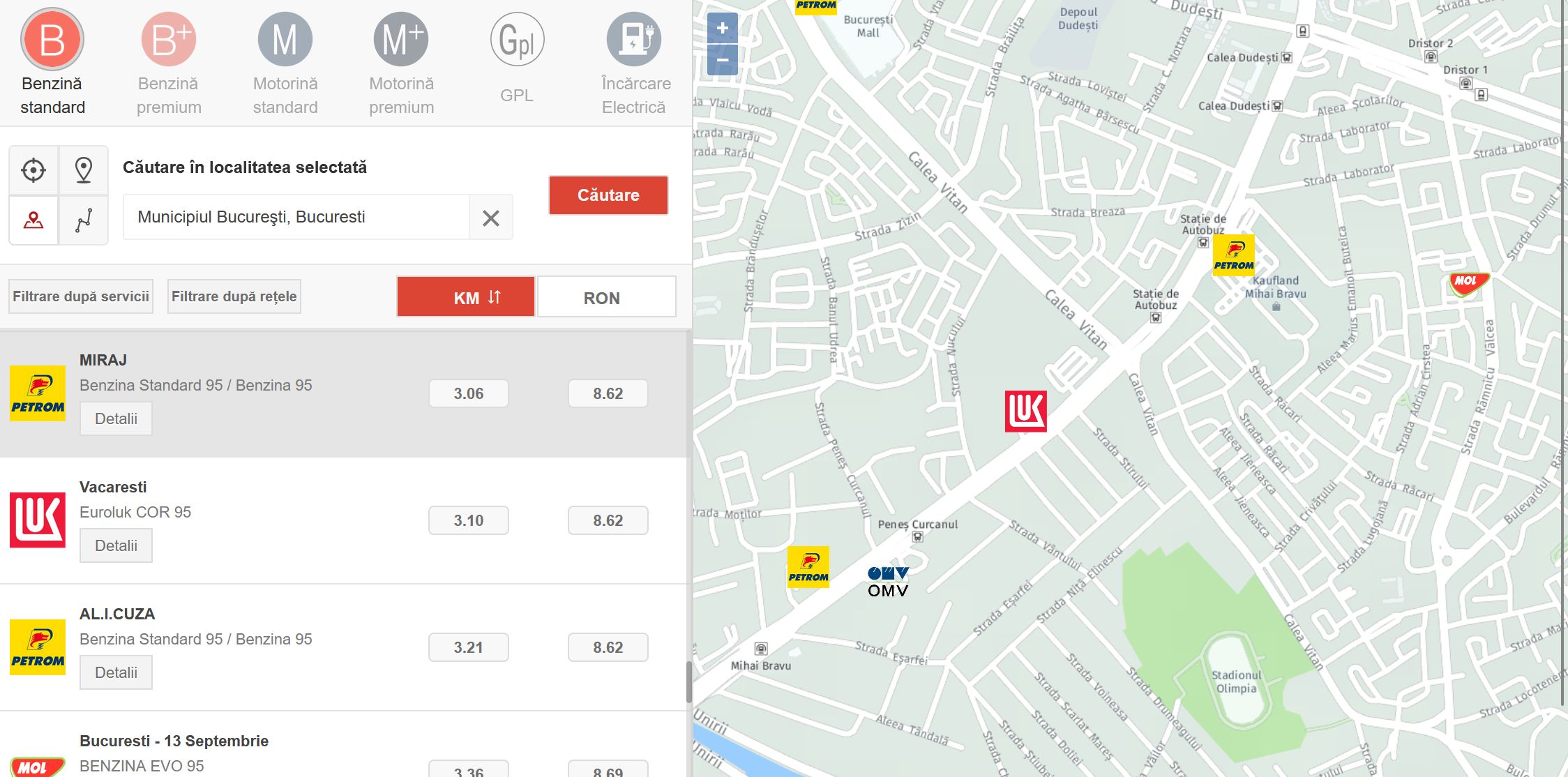 Mai exact, am analizat prețurile în 3 benzinării din lanțuri diferite, respectiv: benzinăria Petrom de pe șoseaua Mihai Bravu nr. 321; benzinăria Lukoil de pe șoseaua Mihai Bravu și benzinăria MOL de pe strada Râmnicu Vâlcea.