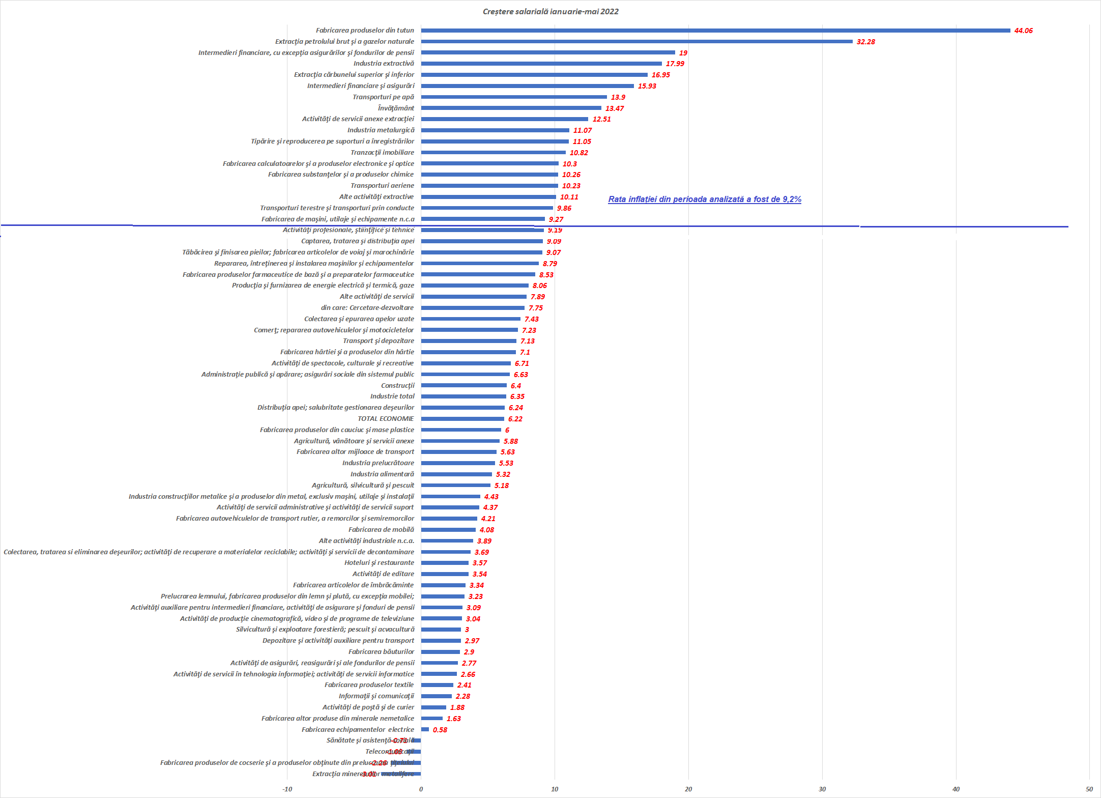 Inflația din perioada ianuarie-iunie 2022 a fost de 10%, ea erodând creșterile de salarii din aceeași perioadă. Din 70 de activități economice, doar în 18 cazuri creșterile salariale au depășit scumpirile, iar în unele situații salariile chiar au scăzut, ceea ce combinat cu efectul inflaționist, a dus la reale probleme financiare pentru salariații acelor sectoare.