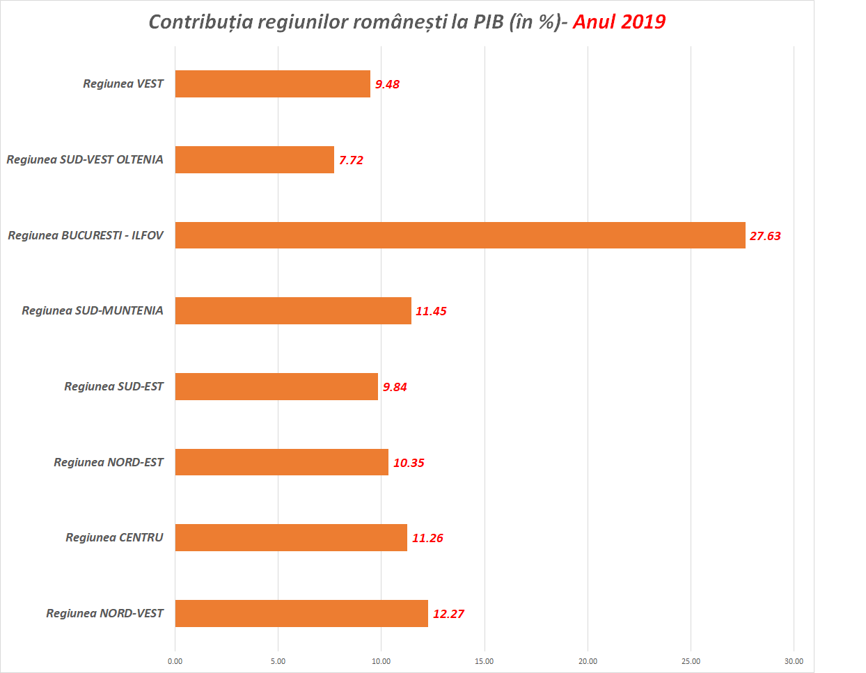 Cine ține în brațe pe cine? Cu cât contribuie fiecare regiune la PIB-ul României