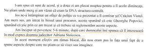 Incercand sa ma intimideze, m-a trimis in biroul lui Craciun Viorel sa ma audieze ca martor. Am scris olograf declaratia, de mana. Cand a vazut ca nu scriu dupa dictare – am scris ca si eu ma arestam, singur, dupa acele povesti din referatul de arestare -, mi-a spus sa ies afara si nu am mai continuat declaratia.