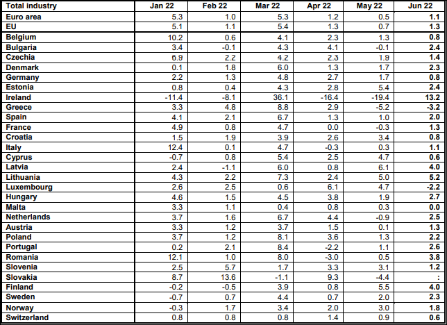 În ceea ce privește scumpirea produselor industriale în ultima lună, doar irlanda ne depășește: