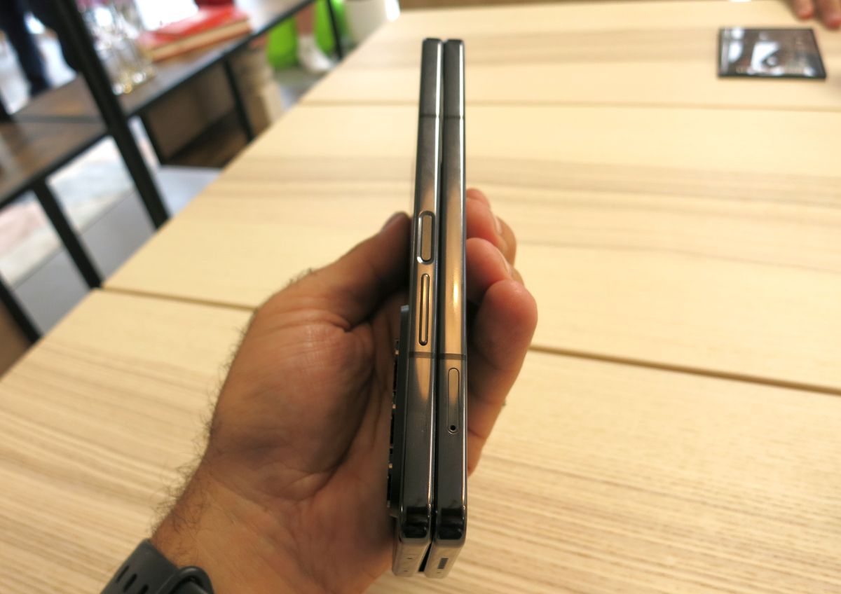 Am putut testa timp de o oră cele două telefoane, în cadrul unui eveniment de preview. La o primă vedere, ecranul pliabil se simte ferm și plăcut la atingere, iar telefonul are o construcție premium, solidă, semn că lucrurile au evoluat mult față de 2019. Balamaua pare foarte rezistentă și stă în orice poziție o pui. Luminozitatea ecranului este excelentă.