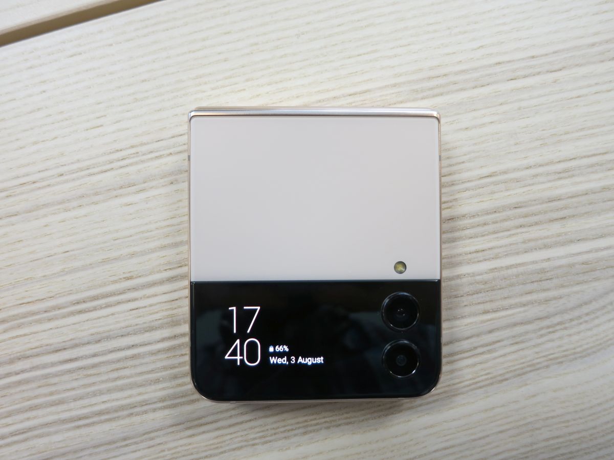 Samsung spune că Z Flip4 poate fi utilizat pentru selfie-uri de calitate, direct din ecranul frontal, folosind camera principală și modul Quick Shot, îmbunătățit.