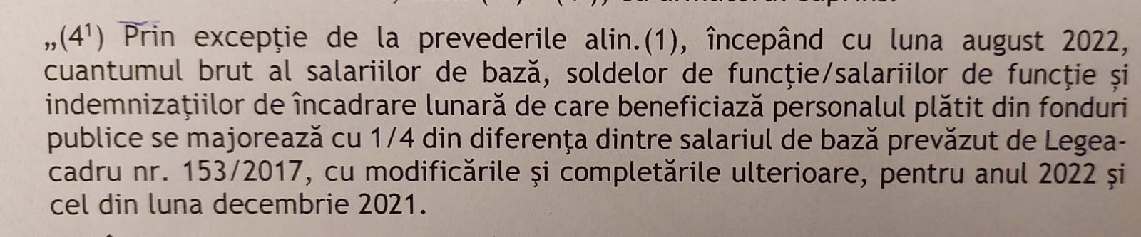 Legea este clară, legea este simplă, chiar dacă este inechitabilă, ea trebuie să fie aplicată, pentru a nu mai exista discriminări, în acest moment având o intenție a Guvernului Ciucă de a emite o Ordonanță de Urgență în sedința din 10.08.2022, prin care să dea tuturor bugetarilor o fărâmă din legea 153/2017.