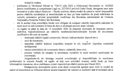 Pe partea de creștere a impozitelor pe proprietate din Ordonanța creșterilor de taxe (OG 16/2022) există un oarecare haos în sensul că sunt probleme cu aplicarea. Unele primării ar fi trimis întrebări la Ministerul Finanțelor, spune Adrian Vascu, pe site-ul propriu. De asemenea, primăriile au cerut contribuabililor care detin cladiri nerezidentiale sa le furnizeze informații.