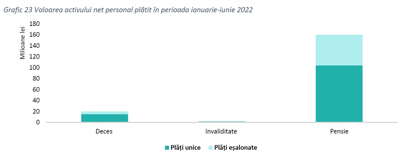 Au fost înregistrate plăți unice în cuantum de 15 milioane lei și plăți eșalonate în cuantum de 5 milioane lei către beneficiarii activului personal net ca urmare a decesului participantului.