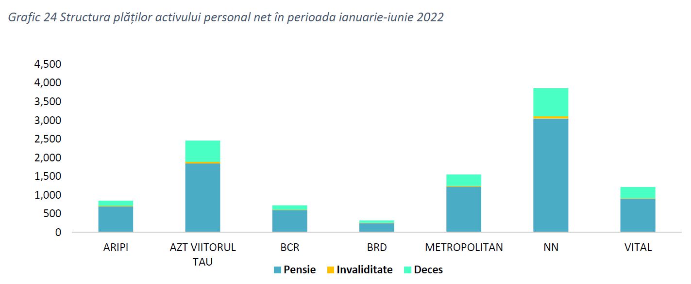 Cele mai mari ponderi în totalul plăților activului personal net în primele șase luni ale anului 2022 au fost înregistrate de FPAP NN (35%), FPAP AZT Viitorul Tău (22%) și FPAP Metropolitan Life (14%), fiind și fondurile cu cel mai mare număr de participanți.