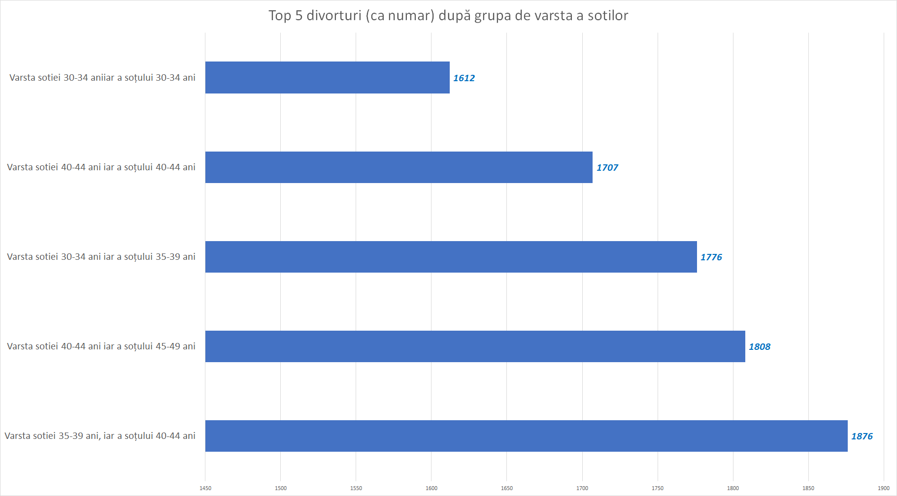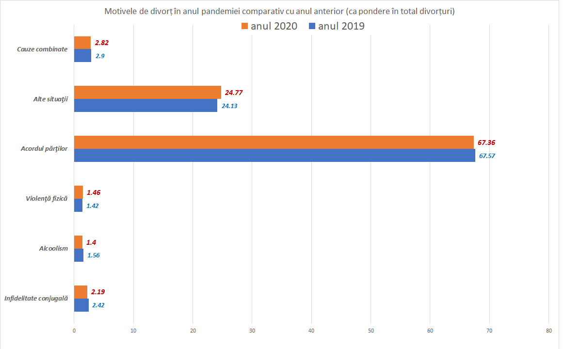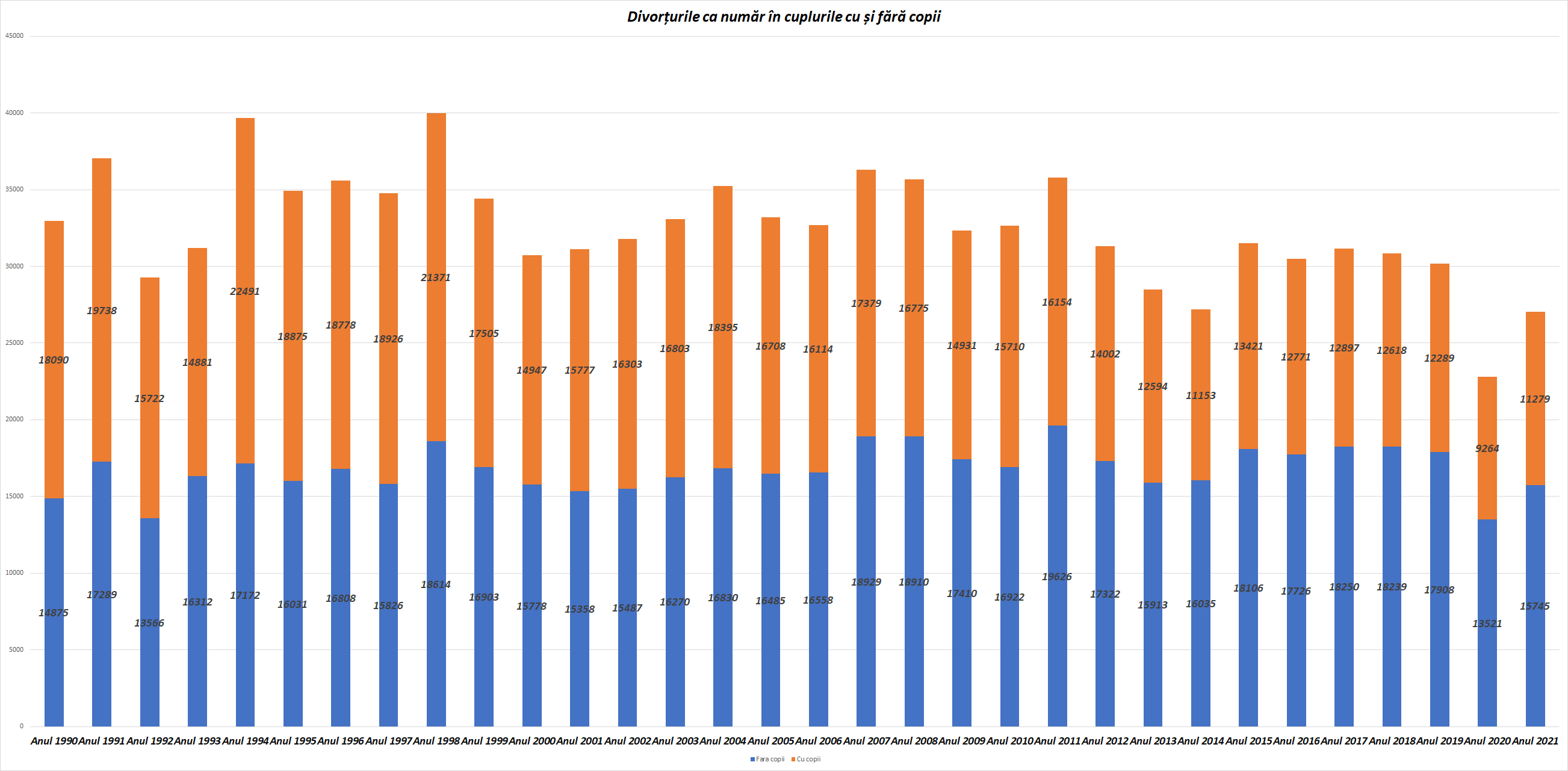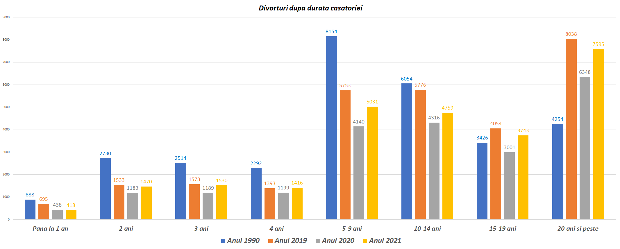 De la circa 4000 de cupluri care divorțau anual în primii ani de după Revoluție, acum se înregistrează circa 8000 (cu mici variații în anii de pandemie)