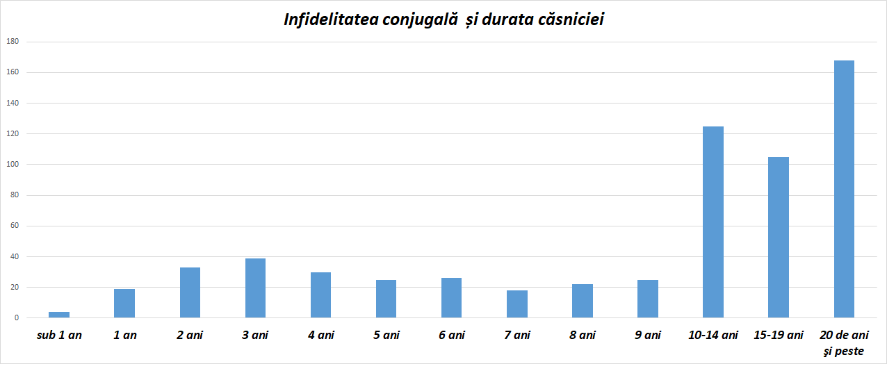 Fals. La o vârstă medie a căsătoriei de 27 de ani, cele mai des întâlnite cazuri de divorț din cauza adulterului se petrec după ce EA face 47 de ani, iar EL în jur de 50 de ani. Sau mă rog, atunci au fost prinși și li s-a intentat divorțul.
