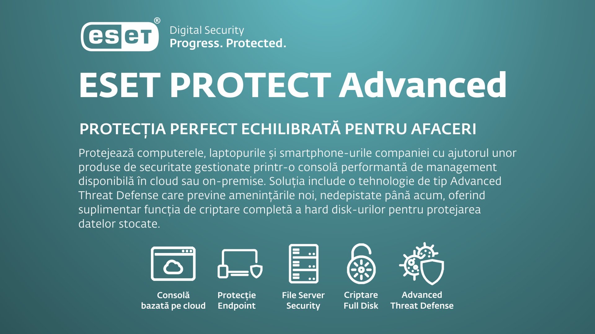 ESET PROTECT Advanced reprezintă o astfel de soluție complexă destinată companiilor, pe care acestea o pot testa oricând gratuit. Prin componenta ESET LiveGuard Advanced oferă un nivel suplimentar de analiză în cloud sandbox a fișierelor și atașamentelor suspecte, o protecție dedicată a datelor în fața accesului neautorizat în caz de furt/pierdere a echipamentelor, prin criptarea completă a hard disk-urilor. Produsul răspunde complex, cu multe nivele de securitate care se sprijină reciproc, provocării de a gestiona și proteja rețelele IT business în fața amenințărilor informatice tot mai dinamice.