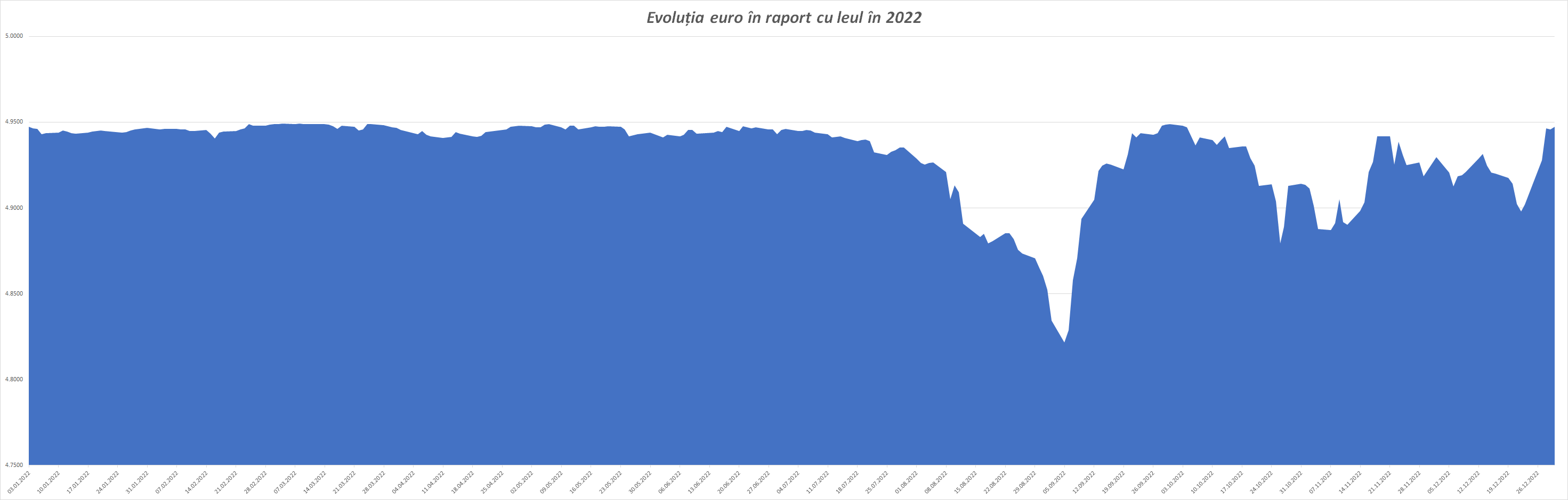 BNR are această politică de flotare controlată a cursului leului, prin care elimină aprecierile sau deprecierile de amploare ale monedei naționale. Leul a rămas relativ stabil în 2022 și am putea anticipa că la fel se va întâmpla și în 2023.