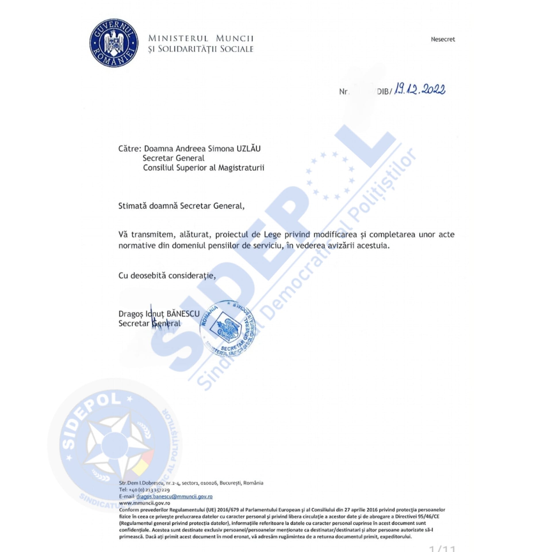 Ministerul Muncii și Solidarității Sociale a fost transmis un proiect de lege privind modificarea și completarea unor acte normative din domeniul pensiilor de serviciu, prin care și Legea 223/2015 privind pensiile militare de stat, precizeaza cei de la sindicatul Europol.